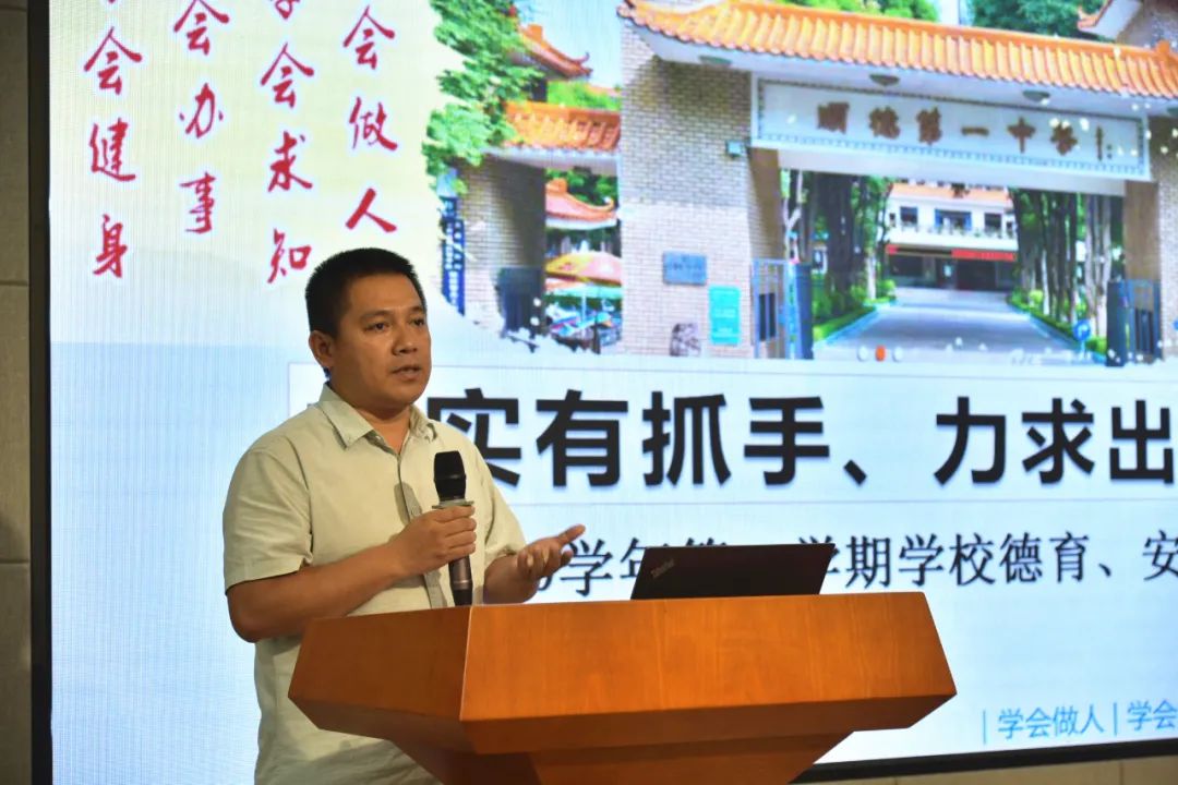隨后,陳水繹副校長(zhǎng)解讀本學(xué)期德育工作計(jì)劃。陳副校長(zhǎng)在點(diǎn)評(píng)上學(xué)年德育工作后,提出本學(xué)期的工作目標(biāo)和計(jì)劃。他表示,疫情防控態(tài)勢(shì)下,學(xué)校將繼續(xù)全方位強(qiáng)化常態(tài)化階段的疫情防控。
