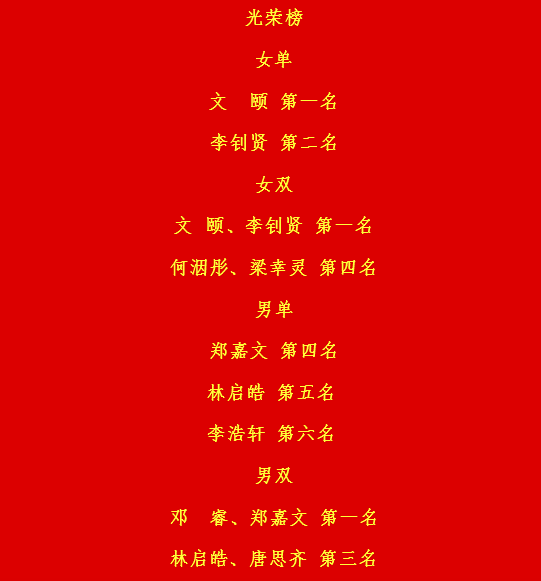 華僑中學(xué)代表順德區(qū)參加高中組別的比賽,本次比賽的運(yùn)動(dòng)員有:林啟皓、李浩軒、唐思齊、鄭嘉文、鄧睿、文頤、李釗賢、何洇彤、梁幸靈。郭千軍老師、杜亮老師擔(dān)任教練。為了備戰(zhàn)此次比賽,在教練的帶領(lǐng)下,華僑中學(xué)乒乓球隊(duì)隊(duì)員刻苦訓(xùn)練,面對(duì)困難與疲勞,他們沒有畏懼和退縮,任汗水打濕脊背,任疲憊爬滿全身依然奮力堅(jiān)持,因?yàn)樗麄冎挥幸粋€(gè)目標(biāo),就是拿下要拿冠軍,為團(tuán)隊(duì)贏得榮譽(yù)。天道酬勤,運(yùn)動(dòng)員在賽場上不畏強(qiáng)敵,冷靜應(yīng)戰(zhàn),艱苦拼搏,最終獲得高中組團(tuán)體總分第一名的優(yōu)異成績,文頤同學(xué)勇奪女單和女雙冠軍被評(píng)為“最佳運(yùn)動(dòng)員”,為華僑中學(xué)和順德區(qū)爭取了榮譽(yù)。