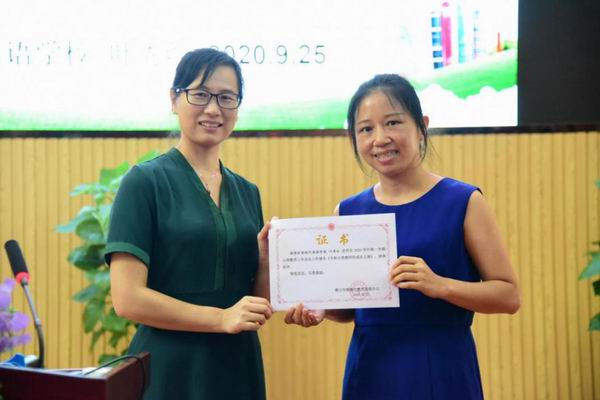 為容桂外國語學(xué)校葉秀紅老師頒發(fā)證書