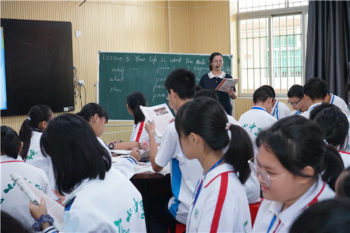 在課例展示中,英語科組萬娜青老師帶領(lǐng)高一(6)班的學(xué)生一起學(xué)習(xí)了北師大新版教材必修一第一單元的第三課Your Life Is What You Make It。萬老師的課堂以小組合作形式,充分運(yùn)用新課標(biāo)理念,層層推進(jìn),幫助學(xué)生解讀文本,讓學(xué)生在語篇中既收獲了語言知識,又受到了正確價值觀的熏陶。