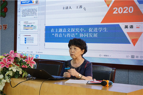 在講座環(huán)節(jié),王薔教授以“在主題意義探究中,促進(jìn)學(xué)生‘得意與得語’協(xié)同發(fā)展”為題,高屋建瓴地提出語言的教育要避免鐘擺效應(yīng),走極端,在教學(xué)傳承上,切忌“Throw the baby out with the bath water”。教師要以始終關(guān)注培養(yǎng)學(xué)生正確的價值觀、必備品格及關(guān)鍵能力的核心素養(yǎng)為己任。王教授強(qiáng)調(diào)英語課程目標(biāo)的轉(zhuǎn)型,廣大教師要關(guān)注學(xué)科的育人價值、 學(xué)生的發(fā)展思維和核心素養(yǎng)的落地,在重組課程內(nèi)容的同時要注重以主題為引領(lǐng)、以語篇為依托。為了讓講座更深入淺出,王教授以具體的課堂教案為范例,點對點講解如何在實際教學(xué)中探究主題意義,落實各項教育教學(xué)目標(biāo)。