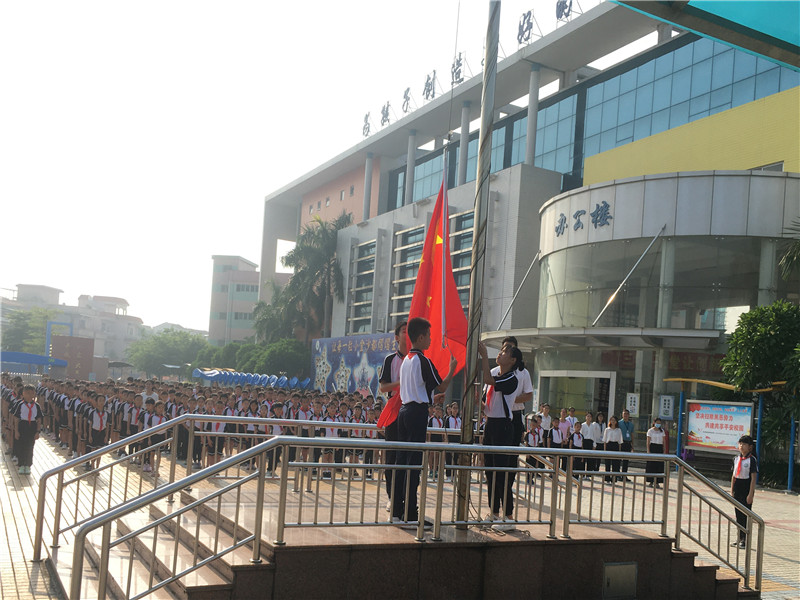 由于場地范圍有限,但是同學(xué)們參加典禮的熱情無限。只見同學(xué)們一個個揚著笑臉,有序地到指定地點站好,靜待典禮開始,整個會場寂靜安然,秩序良好。典禮由麥國才主任主持,首先是升旗儀式,五星紅旗冉冉升起,整齊的隊禮,莊嚴的儀式,傳達出全體師生對祖國的尊重與熱愛!典禮在莊嚴的國歌聲中拉開了序幕。