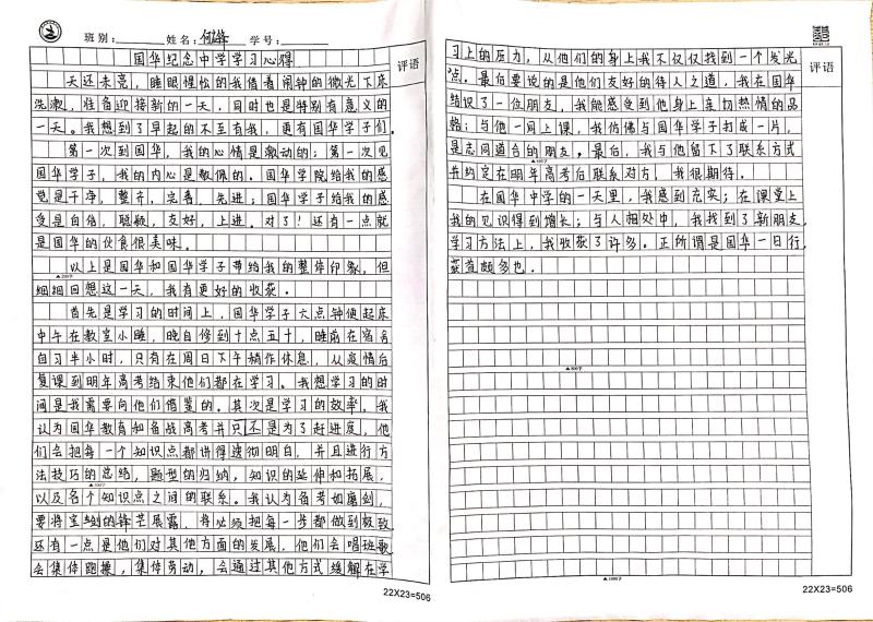 6:45 抵達(dá)國華紀(jì)念中學(xué),入眼可見的是紅色的操場跑道和滿滿的綠化,校園環(huán)境十分優(yōu)美。我們在國華中學(xué)立校緣起碑前合照,記錄下今天的足跡。(用知識改變命運(yùn)――大堂標(biāo)語)路過他們優(yōu)秀畢業(yè)生的宣傳欄時,映入眼簾的是一連串的清華大學(xué),北京大學(xué),復(fù)旦,浙大等等名校的名字。突然對我們即將近距離接觸“大神”們的時間充滿了期待。隨后,國華主任進(jìn)行了十分鐘左右的關(guān)于國華學(xué)生一天的學(xué)習(xí)安排相關(guān)介紹。