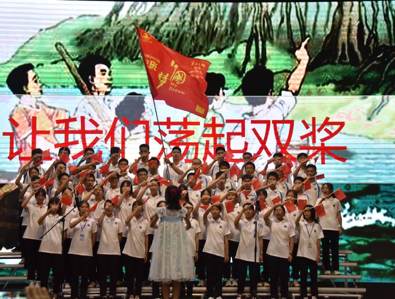 9月29日晚,在均安鎮(zhèn)團(tuán)委支持下,均安中學(xué)舉行高一紅歌比賽。高一年級師生齊聚一堂,將君玉精神、將對祖國的熱愛與感激,融入歌聲當(dāng)中,展現(xiàn)君玉把頌歌獻(xiàn)給祖國華誕,獻(xiàn)給人民,獻(xiàn)給親愛的黨。