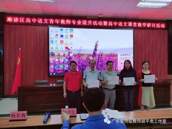 10月16日上午,由順德區(qū)胡平貴特級教師工作室和廣東省羅日明教師工作室聯(lián)合舉辦的“順德區(qū)高中語文青年教師專業(yè)提升活動暨高中語文課堂教學研討活動”在杏壇中學順利舉行,兩個工作室的部分成員以及順德區(qū)高一、高二的一百多位語文教師參加了本次活動。