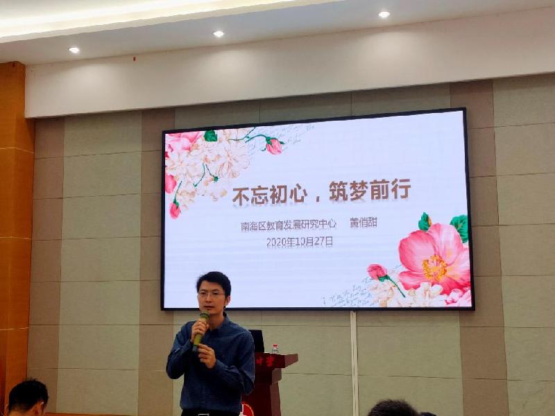 金秋送爽,順德教壇顯生機(jī);名師引領(lǐng),鳳城后浪欲爭先。2020年10月27日,順德區(qū)第七批骨干教師在做好了各項(xiàng)防疫措施的前提下,齊聚李兆基中學(xué),開展了為期一天的集中學(xué)習(xí)和研討?;顒拥拈_始,順德區(qū)教育局劉進(jìn)華科長簡要總結(jié)了本批骨干教師兩年半的培訓(xùn)和成長,并為此次集中培訓(xùn)表達(dá)了殷切的期待。