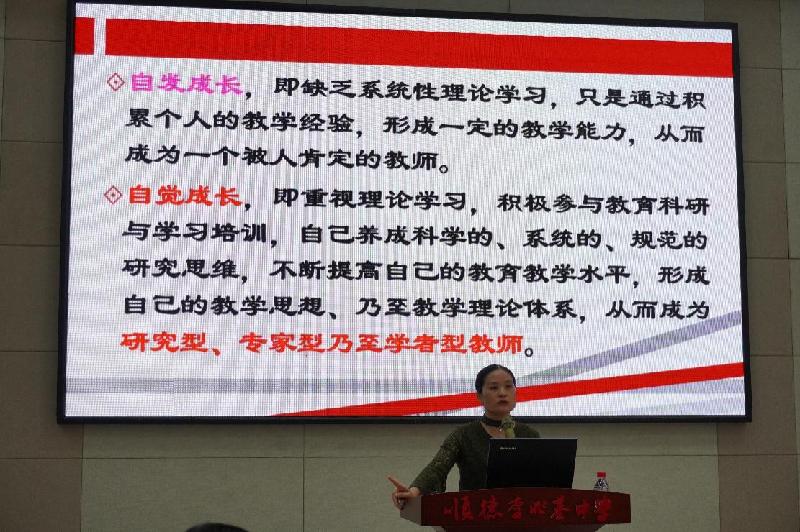 潘校長以“自發(fā)成長”和“自覺成長”為切入點(diǎn),分享她的專業(yè)成長和自我的教學(xué)主張。
