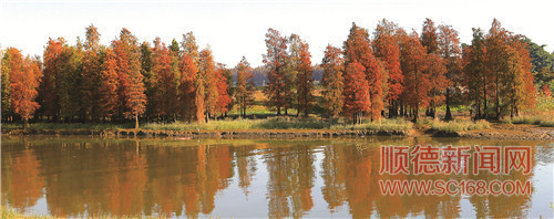 倫教河涌邊成片金黃色水杉。