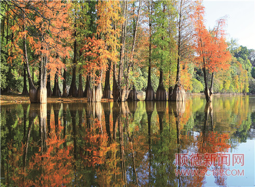 水杉在水面映襯下別有一番景致。