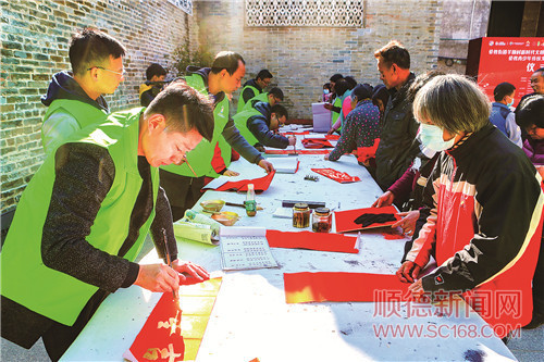 當(dāng)天一大早,羊額月池何公祠就聚集了一批書法名家,即席揮毫為市民免費(fèi)寫春聯(lián)。據(jù)悉,倫教組織書法名家為市民免費(fèi)寫春聯(lián)活動(dòng)已經(jīng)延續(xù)多年,深受市民歡迎。今年活動(dòng)繼續(xù)開展,1月2日至2月10日期間,倫教藝術(shù)文化協(xié)會(huì)、倫教街道書畫協(xié)會(huì)的一眾書法家(文化志愿者)將到各村居開展義務(wù)為民寫春聯(lián)送?;顒?dòng)。