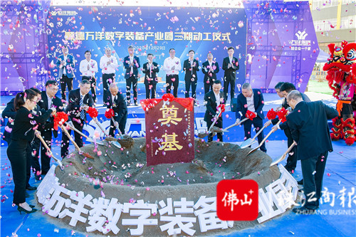 昨日,順德萬洋數(shù)字裝備產(chǎn)業(yè)園三期動工,圖為領導嘉賓為萬洋數(shù)字裝備產(chǎn)業(yè)園三期工程奠基。 /珠江商報記者朱德文攝