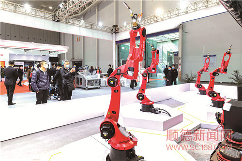 昨日,2020佛山國際智能機器人博覽會在譚洲國際會展中心舉辦。圖為會展中心新松機器人的攤位吸引著眾多前來觀展的客人。/珠江商報記者何冠洪攝