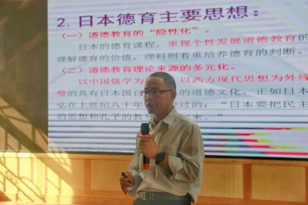 接著是廣東第二師范學(xué)院殷麗萍教授開展專題講座《提升教師課程思政能力的思路對策》。殷教授圍繞課程思政的時代要求、構(gòu)建課程思政工作體系、案例破析等方面,結(jié)合具體的德育管理案例,展示如何提升教師課程思政能力的思路,殷教授的這些對策大大地啟發(fā)了在座的老師們,贏得了在座老師們的熱烈掌聲。