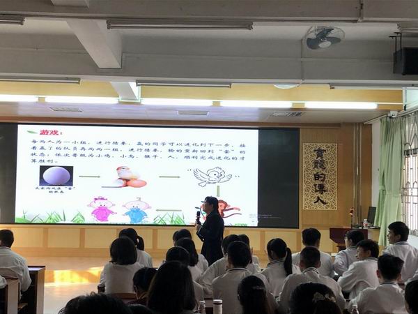 首先,由順德區(qū)第一中學(xué)陳敬霞老師進行《向陽而生方能行遠》班會課展示。陳老師緊緊扣住高三學(xué)習(xí)情況以及高三學(xué)生的特點,以生物學(xué)科知識滲入班會課中,將教書育人有機結(jié)合的主線,從趣味游戲?qū)耄谟螒蛑屑ぐl(fā)學(xué)生的活動興趣,并且營造輕松愉快的學(xué)習(xí)氛圍,接著順勢引出高三學(xué)習(xí)的壓力,貼近學(xué)生的學(xué)習(xí)現(xiàn)狀,讓學(xué)生都有感而發(fā),并且充分利用合作形式,讓學(xué)生在交流溝通中思考解決辦法,結(jié)合生物知識引導(dǎo)學(xué)生樹立“向陽而生方能行遠”的精神與意志,傳播正能量。陳老師的班會課形式多樣,以學(xué)生為主體,將思想升華,讓聽眾們獲益良多。