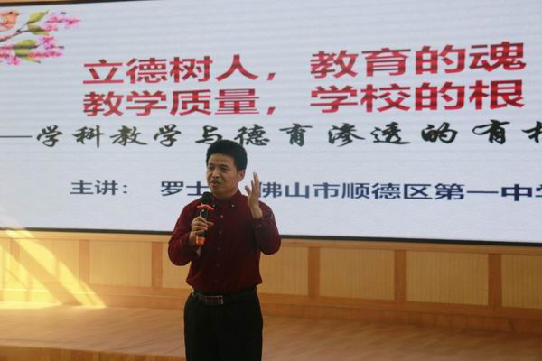 然后進行專家點評和微講座,李兆基中學(xué)桂啟升老師的《基于語文學(xué)科核心素養(yǎng)的班會升格的思考》運用起承轉(zhuǎn)合的方法巧妙地將語文學(xué)科核心素養(yǎng)融入到班會之中;樂從中學(xué)費貞元老師的《育人于心,化德于心-淺談班級活動在立德樹人中的積極意義》圍繞港澳臺以及海外德育活動的特點以及“活動與人”兩大方面進行深入的講解;陳登職業(yè)技術(shù)學(xué)校杜秋老師的《談?wù)勑畔⒓夹g(shù)課的德育滲透》通過具體的班會教學(xué)設(shè)計,以師生的問答方式,靈動地詮釋了如何“問出正能量”;順德區(qū)第一中學(xué)羅士禱老師的《學(xué)科教學(xué)與德育滲透的有機結(jié)合》從問題出發(fā),引出“立德樹人,教育的魂,教學(xué)質(zhì)量,學(xué)校的根”的深度認識;以及龍江中學(xué)邱志敏老師的《新高考模式下巧借考試激活小組戰(zhàn)斗力》通過班級管理策略,立足于生活中實實在在的有效案例,讓我們深入了解如何巧借考試激活小組戰(zhàn)斗力。每一位老師都圍繞德育管理有針對性的進行講授,而且巧用具體案例,點面結(jié)合,從局部到整體地展示有效性策略,每一位講授老師身上都各有特點,閃發(fā)著光芒,讓在座老師都聆聽入迷。