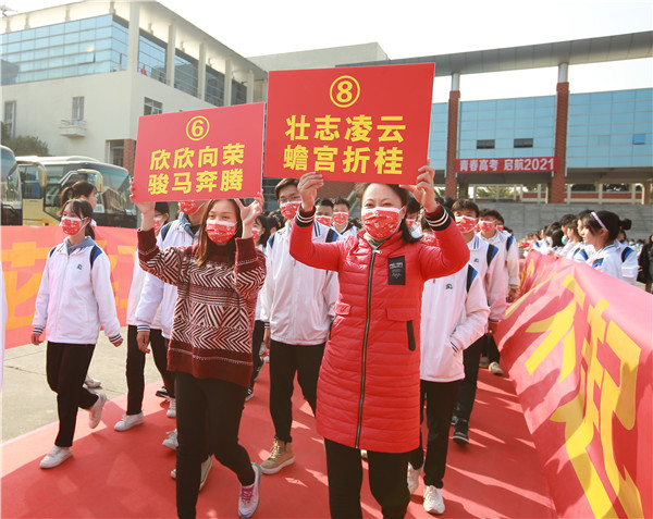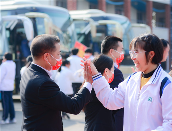 最后,伴隨著學(xué)校全體行政、學(xué)弟學(xué)妹的祝福聲,高三全體師生在“奮斗2020,每個(gè)人都了不起!搏擊2021,送你一朵小紅花!”的夾道紅幅標(biāo)語中以自信堅(jiān)定、激情昂揚(yáng)的奮斗姿態(tài)登上大巴,奔赴戰(zhàn)場(chǎng)!