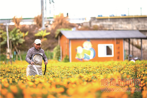 在陳村仙涌村, 桔農(nóng)正在為年桔澆水。