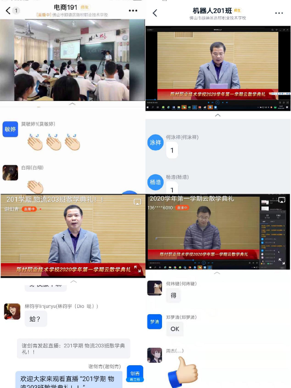 隨后,順德區(qū)第一職業(yè)教育集團(tuán)黨委書記、陳村職校校長(zhǎng)梁澤洪在云端發(fā)表了熱情洋溢的致辭。梁校長(zhǎng)在致辭中強(qiáng)調(diào),2020年是極不平凡的一年,雖然疫情當(dāng)前,學(xué)校依然在教育教學(xué)和競(jìng)賽活動(dòng)方面取得了驕人的成績(jī),這是全校師生共同努力的結(jié)果,希望2021年大家能夠保持初心,砥礪前行。最后,梁校長(zhǎng)對(duì)師生假期期間提出了幾點(diǎn)期望,一是關(guān)注形勢(shì),加強(qiáng)科學(xué)防控;二是提高警惕,增強(qiáng)安全意識(shí);三是合理安排,充實(shí)假期生活。