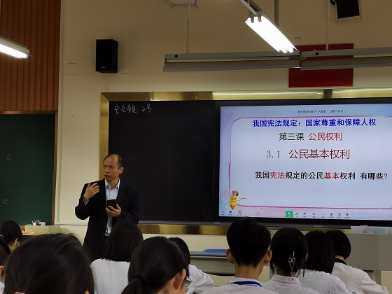 我校道法科江萬里科長在初二6班以《公民的基本權(quán)利》為題,給同行們展示了一堂精彩的“互聯(lián)?深度”智慧課例。