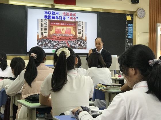 正所謂“良好的開端是成功的一半”,引入部分作為一堂課的開頭,是課堂教學中的重要一環(huán)。江老師以正在召開的全國“兩會”為暖場時政熱點,趣味導(dǎo)入,引發(fā)學生對新知識產(chǎn)生好奇心,激發(fā)其探究興趣。