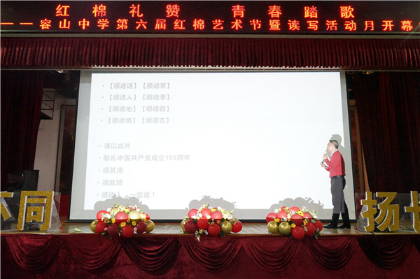 紅棉藝術(shù)節(jié)活動(dòng)的熱潮一浪接一浪,緊接著我校十個(gè)班級(jí)以大合唱的形式禮贊紅棉,歌詠青春,唱響容山精神。我校為發(fā)揚(yáng)書院文化與書香文化,與紅棉藝術(shù)節(jié)同期舉辦的還有引人矚目的讀寫活動(dòng)。同時(shí)我校特邀來(lái)到現(xiàn)場(chǎng)的著名藝術(shù)家們也參與到活動(dòng)中去。