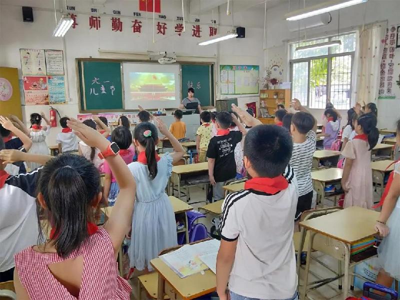 今年的兒童節(jié)節(jié)目豐富,游戲多多。葫蘆娃來襲,樂隊(duì)演奏、教師葫蘆絲獨(dú)奏、學(xué)生獨(dú)唱;游戲聽歌辨曲、心球相傳、“疫”問一答……節(jié)目與游戲“輪番上證”,妙趣橫生。更“吸睛”的是,學(xué)校教師們專門為孩子們排練了舞蹈《你笑起來真好看+天天向上》,看著平日嚴(yán)肅的老師們開心地舞蹈,孩子們更是樂開了花。