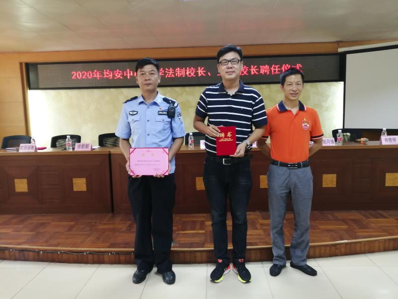 典禮伊始,學(xué)校首先聘任李禮安為均安中心小學(xué)法制校長(zhǎng)、徐新毅為衛(wèi)生校長(zhǎng),并為他們頒發(fā)了聘任書(shū)。