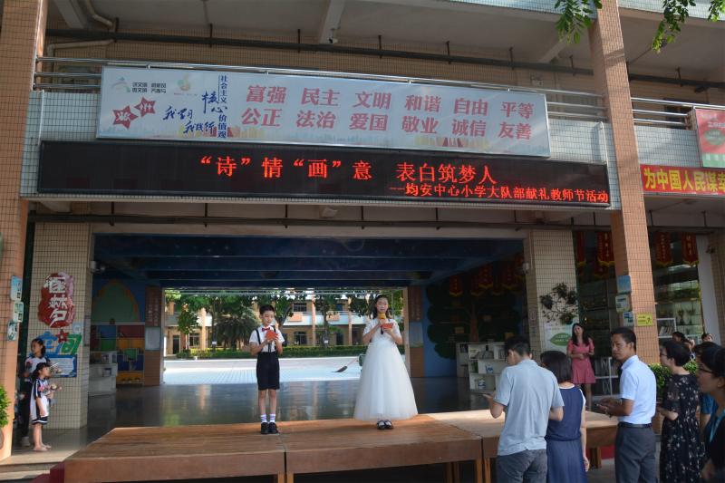 隨后,少先隊(duì)均安中心小學(xué)大隊(duì)邱雅詩同學(xué)特發(fā)出倡議,號(hào)召大家尊師敬師,聽從老師的教誨,學(xué)做優(yōu)秀的少先隊(duì)員。