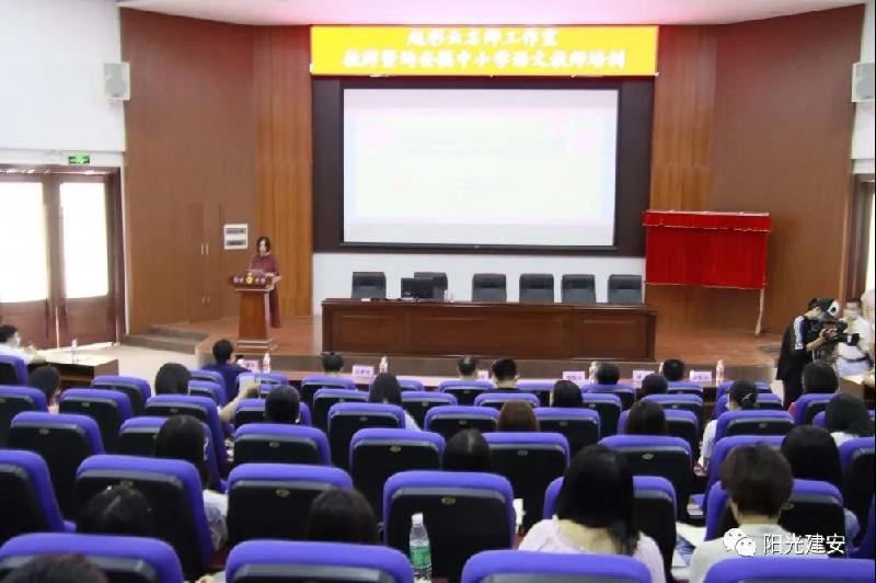 8月29日上午,均安鎮(zhèn)舉辦“順德區(qū)趙彩云名師工作室”掛牌暨中小學(xué)語文教師專題培訓(xùn)活動,以學(xué)習(xí)拉開了新學(xué)年教育教學(xué)改革之旅。廣東省教研院專家馮善亮、廣東實驗中學(xué)越秀學(xué)校特級教師李旭山、均安鎮(zhèn)副鎮(zhèn)長勞國明、宣傳文體旅游辦公室(教育辦公室)主任李錫杰等專家、領(lǐng)導(dǎo)和中小學(xué)教學(xué)行政、語文教師代表等170多人見證了掛牌儀式,并聆聽了兩場專家講座。