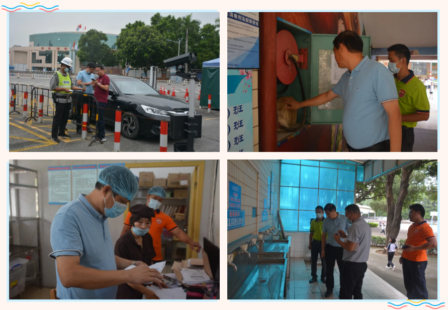 焦柏強(qiáng)校長帶領(lǐng)校園安全小組成員對校園設(shè)施、校園環(huán)境進(jìn)行了二次細(xì)查。實(shí)地操作了各設(shè)施設(shè)備的使用情況,確保其功能正常運(yùn)轉(zhuǎn)。
