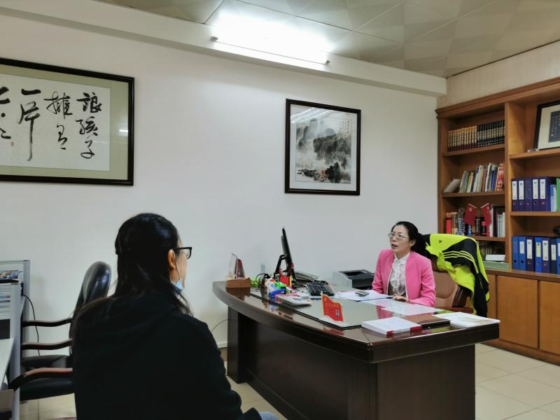 評審組專家專訪心理教師和主管領(lǐng)導(dǎo)。