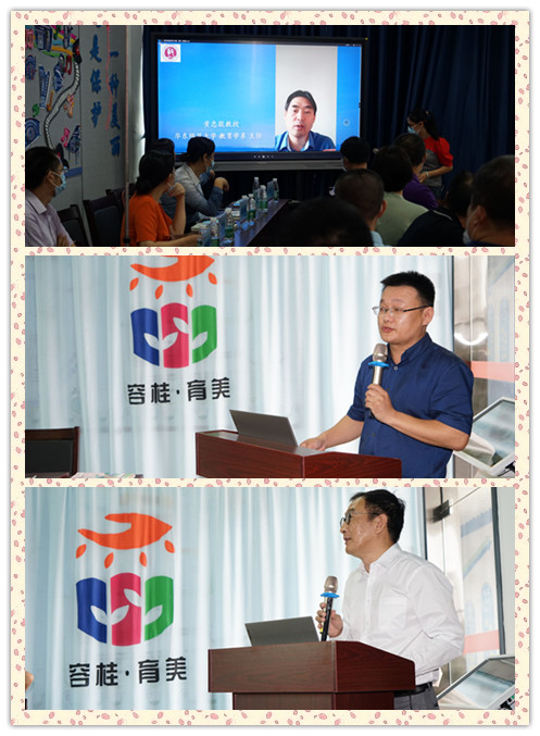華東師范大學(xué)教育學(xué)系主任黃忠敬教授作為共創(chuàng)課程專家顧問代表,也提前為本次活動錄制了講話。他充分肯定了育美集團(tuán)的課程日活動,認(rèn)為“主題有亮點(diǎn)、形式有創(chuàng)新、活動有平臺”,課程資源的建設(shè)很好地把握住了“共享共創(chuàng)”的精髓。最后,他對與容桂育美教育集團(tuán)新一輪的合作表示期待。順德區(qū)教育發(fā)展中心副主任王濤先生講話認(rèn)為,利用現(xiàn)代教育技術(shù),結(jié)合微課、碼課利用二維碼的形式展示課程建設(shè)成果,在順德是個創(chuàng)新,課程館建設(shè)在國內(nèi)也是個創(chuàng)新。希望課程館能發(fā)揮其獨(dú)特的功能,在教師成長的跑道上起到很好的助推作用,把它建設(shè)成為教師展示交流的平臺、骨干名師成長的搖籃、教師活動之家。順德廚師學(xué)院院長陳健先生發(fā)表講話,他認(rèn)為本次活動起點(diǎn)高、質(zhì)量優(yōu)、有特色。起點(diǎn)高,源于育美集團(tuán)頂層設(shè)計、華東師大名家指導(dǎo);質(zhì)量優(yōu),皆因集教師、專家、學(xué)校、集團(tuán)、行業(yè)、社會之力共享共創(chuàng),協(xié)同開發(fā);有特色,是因為開發(fā)特色課程、鄉(xiāng)土課程、通識課程,既重視知識傳承,又重視文化素質(zhì)教育。