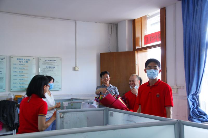 高三學(xué)子正進(jìn)行模擬考試,為了讓學(xué)子們不受打擾,張局長(zhǎng)輕聲向熊校長(zhǎng)詢(xún)問(wèn)他們的身心健康和備考狀態(tài)。 隨后,張局長(zhǎng)走入高三教師辦公室,慰問(wèn)正在忙碌的一線(xiàn)教師,感謝他們的辛勤付出。張局長(zhǎng)高度贊揚(yáng)了羅中教師吃苦耐勞的拼搏精神,同時(shí)勉勵(lì)大家再接再厲,再創(chuàng)佳績(jī)。 余逸主任向高三年級(jí)級(jí)長(zhǎng)蘇靜瓊老師獻(xiàn)上了鮮花,并祝愿羅中學(xué)子在2020年高考中取得豐收碩果。 在高考沖刺關(guān)鍵時(shí)期,區(qū)領(lǐng)導(dǎo)的慰問(wèn)進(jìn)一步鼓舞了高三師生的士氣。高三師生將以更高昂的斗志、更飽滿(mǎn)的狀態(tài)、更務(wù)實(shí)的態(tài)度投入到備考沖刺中。七月,我們期待再創(chuàng)高考新的輝煌!