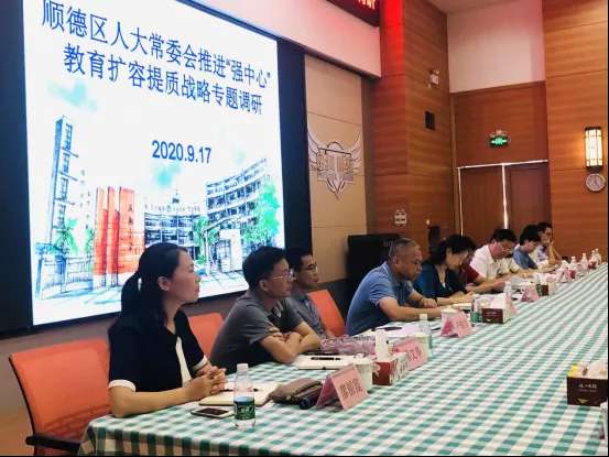 百年大計(jì),教育為本。9月17日,順德區(qū)人大常委會(huì)推進(jìn)的“強(qiáng)中心”教育擴(kuò)容提質(zhì)戰(zhàn)略專題調(diào)研會(huì)在順德區(qū)鳳翔小學(xué)舉行。由區(qū)人大常委會(huì)副主任、市教育科學(xué)研究所所長(zhǎng)舒悅,區(qū)人大常委會(huì)委員、教科文衛(wèi)華僑工委主任何允唐,區(qū)教育局副局長(zhǎng)羅勁柏帶領(lǐng)的區(qū)人大及區(qū)屬部分領(lǐng)導(dǎo)組成的調(diào)研組成員來(lái)到大良街道,在大良街道人大工委主任陳金團(tuán),大良街道黨工委委員伍時(shí)駿,大良教育辦主任李翠芬等領(lǐng)導(dǎo)的陪同下,通過(guò)實(shí)地考察調(diào)研、聽(tīng)取匯報(bào)等方式,了解大良街道教育擴(kuò)容提質(zhì)工作的部署與落實(shí)情況,積極推進(jìn)順德區(qū)“強(qiáng)中心”教育戰(zhàn)略發(fā)展。