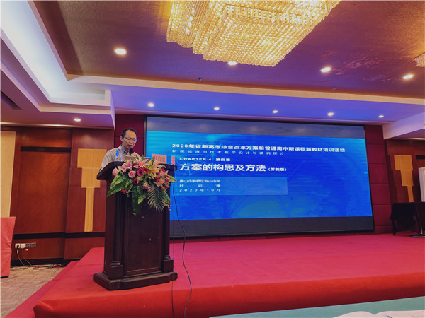 2020年10月24日至26日,由廣東省教育研究院主辦的“廣東省高考綜合改革方案和普通高中新課標(biāo)新教材培訓(xùn)研修活動(dòng)(高中通用技術(shù)學(xué)科)”在佛山市順德區(qū)仙泉酒店舉行。我校通用技術(shù)學(xué)科杜啟康老師受邀參加本次研修活動(dòng),在最后一天的活動(dòng)中作主題為新課標(biāo)通用技術(shù)教學(xué)設(shè)計(jì)與課例探討的經(jīng)驗(yàn)分享報(bào)告。