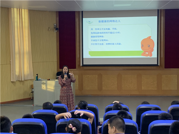 整個講座氣氛活躍,通過師生互動、觀看視頻、問題搶答等形式,讓同學(xué)們認識到作為學(xué)生自身要遵守網(wǎng)絡(luò)道德規(guī)范,養(yǎng)成良好的上網(wǎng)習(xí)慣,選擇瀏覽和自己的日常學(xué)習(xí)生活有益的信息,并且要注意保持自制力,做到不沉浸于網(wǎng)上聊天、游戲等虛擬世界,做健康的網(wǎng)絡(luò)小達人。最后,同學(xué)們還通過搭配動作大聲宣讀“健康上網(wǎng),健康健康上網(wǎng)”,將活動推上高潮。