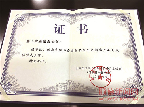 全國圖書館文化創(chuàng)意產(chǎn)品開發(fā)聯(lián)盟證書。
