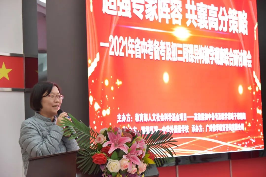 曾祥明執(zhí)行校長首先開展《立志高遠 追求卓越――2021年新中考備考思路及對策》的主題講話。他向在座教育專家及同行詳細介紹我校在中考備考中所作出的探索和取得的成就。