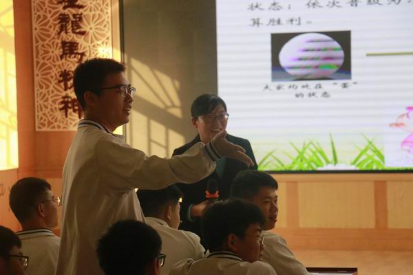首先,由順德區(qū)第一中學(xué)陳敬霞老師進(jìn)行《向陽(yáng)而生方能行遠(yuǎn)》班會(huì)課展示。陳老師緊緊扣住高三學(xué)習(xí)情況以及高三學(xué)生的特點(diǎn),以生物學(xué)科知識(shí)滲入班會(huì)課中,將教書(shū)育人有機(jī)結(jié)合的主線(xiàn),從趣味游戲?qū)?,在游戲中激發(fā)學(xué)生的活動(dòng)興趣,并且營(yíng)造輕松愉快的學(xué)習(xí)氛圍,接著順勢(shì)引出高三學(xué)習(xí)的壓力,貼近學(xué)生的學(xué)習(xí)現(xiàn)狀,讓學(xué)生都有感而發(fā),并且充分利用合作形式,讓學(xué)生在交流溝通中思考解決辦法,結(jié)合生物知識(shí)引導(dǎo)學(xué)生樹(shù)立“向陽(yáng)而生方能行遠(yuǎn)”的精神與意志,傳播正能量。陳老師的班會(huì)課形式多樣,以學(xué)生為主體,將思想升華,讓聽(tīng)眾們獲益良多。