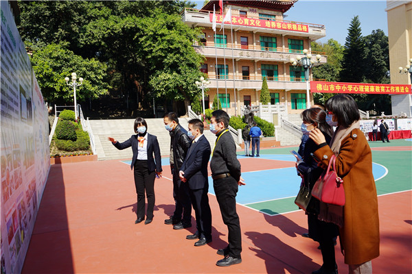2021年1月13日下午,佛山市中小學(xué)心理健康教育工作推進(jìn)會(huì)參會(huì)嘉賓150余人在佛山市教育局三級(jí)調(diào)研員陳贊虎、佛山市教育局德育體育衛(wèi)生與藝術(shù)科一級(jí)主任科員龐志陽的帶領(lǐng)下,蒞臨容山中學(xué),參觀學(xué)校的心理健康教育特色成果。