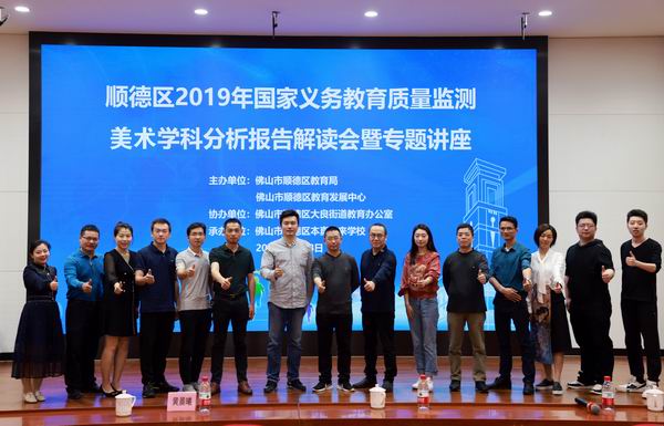 為進一步做好國家義務(wù)教育質(zhì)量監(jiān)測結(jié)果解讀工作,充分認識監(jiān)測工作的重要意義,引導美術(shù)教師樹立正確的藝術(shù)教育質(zhì)量觀,促進學生綜合素質(zhì)的提升和身心的健康發(fā)展,2021年3月18日上午,由順德區(qū)教育局主辦,區(qū)教育發(fā)展中心協(xié)辦的順德區(qū)2019年國家義務(wù)教學質(zhì)量監(jiān)測美術(shù)學科分析報告解讀會暨專題講座在順德區(qū)本真未來學校報告廳順利舉行。佛山市教育局教研室美術(shù)教研員陳日新老師,順德區(qū)教育發(fā)展中心黃晨曦副主任,教育質(zhì)量監(jiān)測室徐安平副主任、詹火濫老師,教育教學研究室美術(shù)教研員王育群老師,各鎮(zhèn)街美育專干、美術(shù)教研組長出席此次會議,會議由王育群老師主持。全區(qū)200多位中小美術(shù)骨干教師分別在十個鎮(zhèn)街的分會場,以觀看網(wǎng)絡(luò)直播的形式參加了此次活動。