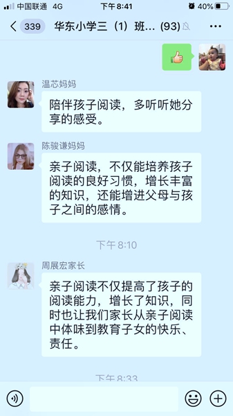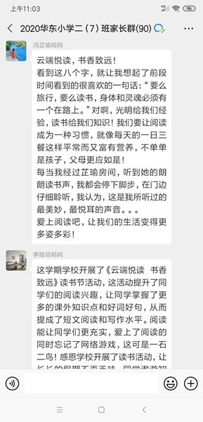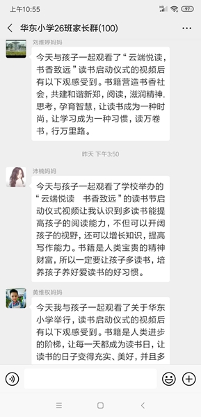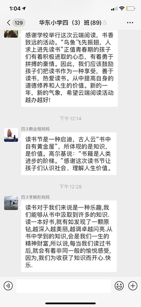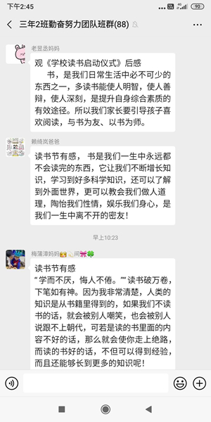 各班家長(zhǎng)們也在線上進(jìn)行讀書(shū)節(jié)互動(dòng)