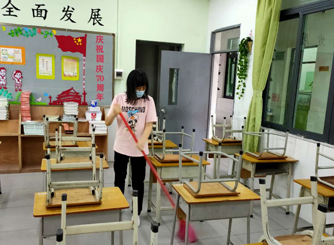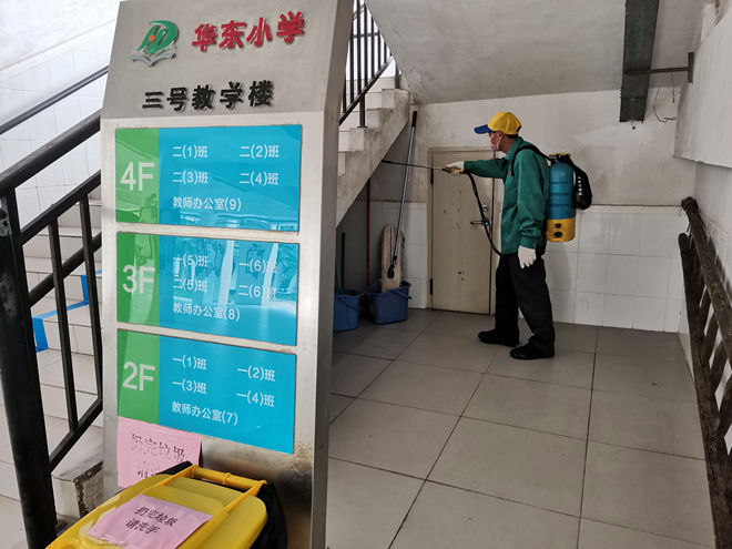 此外,學校還組織后勤人員每天進行晨掃、下午掃和消毒,加大校內清掃力度,認真落實清掃保潔制度,及時清掃辦公樓道、廁所,及時清理垃圾污物,保證環(huán)境衛(wèi)生整潔。還組織保安員不定期噴灑消毒液,防止“四害”傳媒疾病的發(fā)生和流行,確保師生身體健康。