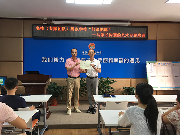 夏日炎炎,酷暑難當,但葉霖佳小學的老師們學習的熱情絲毫不受影響。2020年7月22日下午3:30順德演講與口才協(xié)會鐘家勤副會長結(jié)合在我校蹲點“問診把脈”發(fā)現(xiàn)的問題,百忙中抽空前來為全校老師作“與家長溝通的藝術(shù)專題”的培訓。