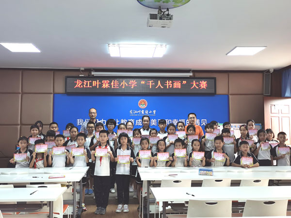 為了為進(jìn)一步培養(yǎng)我校學(xué)生對(duì)書畫的興趣,營(yíng)造學(xué)校書香氛圍,提高學(xué)生的藝術(shù)品味,9月3日下午,葉霖佳小學(xué)組織了“千人書畫大賽”?!扒藭嫶筚悺睂?duì)于全面提升學(xué)生的綜合素質(zhì)和審美能力,弘揚(yáng)書法和繪畫藝術(shù),打造書香校園有著深刻的意義。本次“千人書畫”大賽提供了硬筆、軟筆、繪畫共三個(gè)項(xiàng)目,豐富拓展了同學(xué)們發(fā)揮才能的空間。