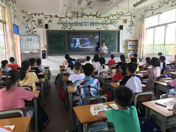 圖為:歐老師在進行“同講普通話,攜手進小康”主題班會