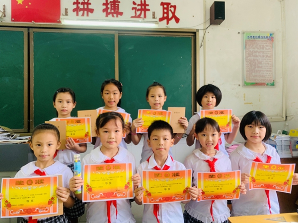 榮獲班級(jí)特等獎(jiǎng)的同學(xué)上臺(tái)領(lǐng)獎(jiǎng)