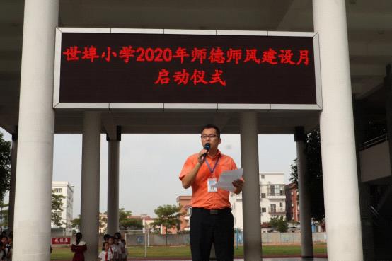 隨后,羅排牽副校長向全體師生致辭并宣布“世埠小學(xué)師德師風(fēng)教育月活動(dòng)”正式啟動(dòng)。羅校長向我校老師表達(dá)了衷心的祝福和美好的期望。他希望所有教師加強(qiáng)師德修養(yǎng),錘煉高尚品德,教書育人,為人師表,努力做一個(gè)高尚的老師。