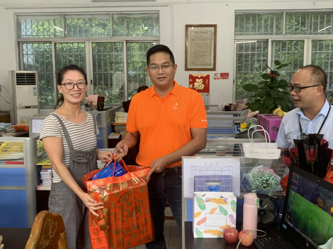 學(xué)校的熱心家委們?cè)跁?huì)長的帶領(lǐng)下自發(fā)組織了一場贈(zèng)旗慰問儀式,為老師們送去鮮花和祝福,感謝老師們一直以來的辛勤耕耘。贈(zèng)旗儀式上,家委會(huì)會(huì)長代表家長們向邱校長贈(zèng)與了感謝錦旗,隨后家委代表們手捧鮮花,送到辦公室老師們的手上以示感恩之情。