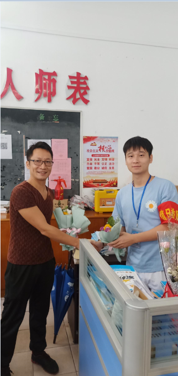 校園里孩子們捧著鮮花奔走在辦公室的身影格外引人注目,“老師,這是送您的禮物,祝您教師節(jié)快樂”一聲聲稚嫩的祝福暖進(jìn)了老師的心窩。學(xué)校還為每位老師準(zhǔn)備了一支鮮紅的玫瑰花。